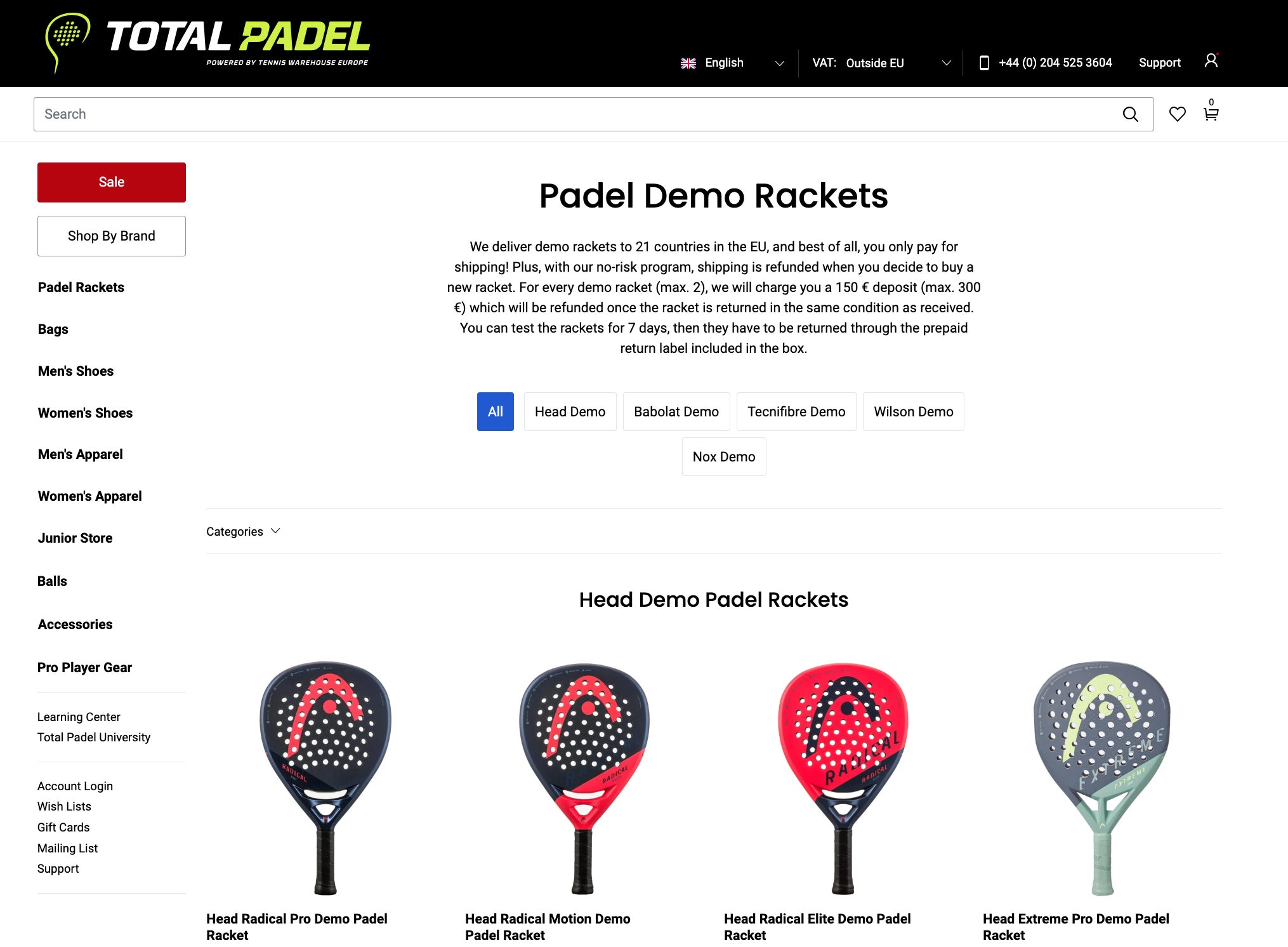 - Total Padel vous permet de tester jusqu'à 2 raquettes de padel pendant 7 jours.